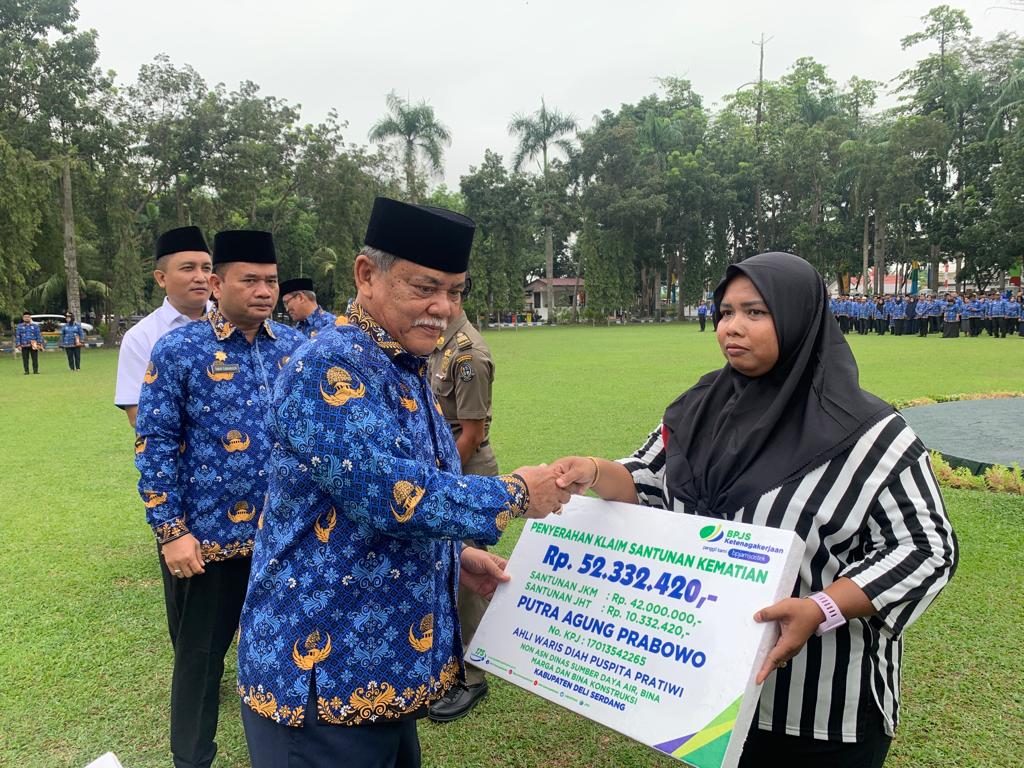 “Kami memberikan apresiasi setinggi-tingginya kepada Bapak Wakil Bupati selaku perwakilan dari Pemkab Deli Serdang yang telah memperhatikan kesejahteraan pegawai non ASN di lingkungan Pemkab. Hari ini diserahkan langsung oleh Bapak Wakil Bupati secara simbolis santunan kematian bagi non ASN di lingkungan Pemerintahan kabupaten Deli Serdang dan ini merupakan bukti kehadiran Negara bagi masyakarat pekerja yang menjamin kesejahteraan pekerja dan keluarganya”, tuturnya.