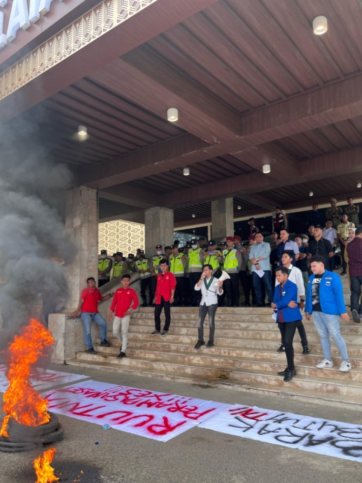 ketua DPRD sumatera selatan juga menyampaikan menerima seluruh aspirasi kawan-kawan HMI,PMII,LMND dan siap menyampaikan aspirasi ini ke DPR-RI serta ketua DPRD provinsi sumatera selatan akan juga bersurat kepada Mentri sekretariat negara (mensesneg) agar presiden RI dapat mengeluarkan Perpu atas disahkan UU TNI ini.(Tim AKPERSI)