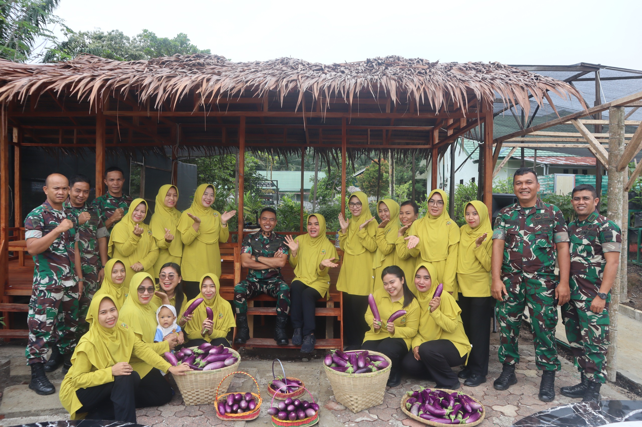 Pada kesempatan itu Letkol Inf Wahidin Sobar, S.Sos., M.Sc. menerangkan, dalam tanaman di kebun Modern dan Toga memiliki tanaman Terong,cabai,Tomat,dan kandang ayam bertelur dan tanaman obat- obat, kesempatan ini melaksanakan panen tanaman terong yang dipanen merupakan hasil kerja sama Prajurit dan Persit yaitu melalui Program Lahan Inovatif.