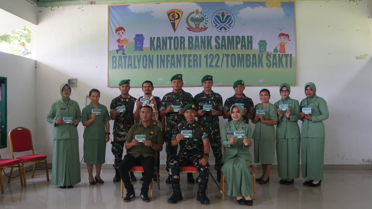 Peresmian Bank sampah Yonif 122/TS oleh Danyonif 122/TS dan Kepala Dinas Lingkungan Hidup menandai dimulainya pengelolaan sampah yang efektif dan efisien di Yonif 122/TS.