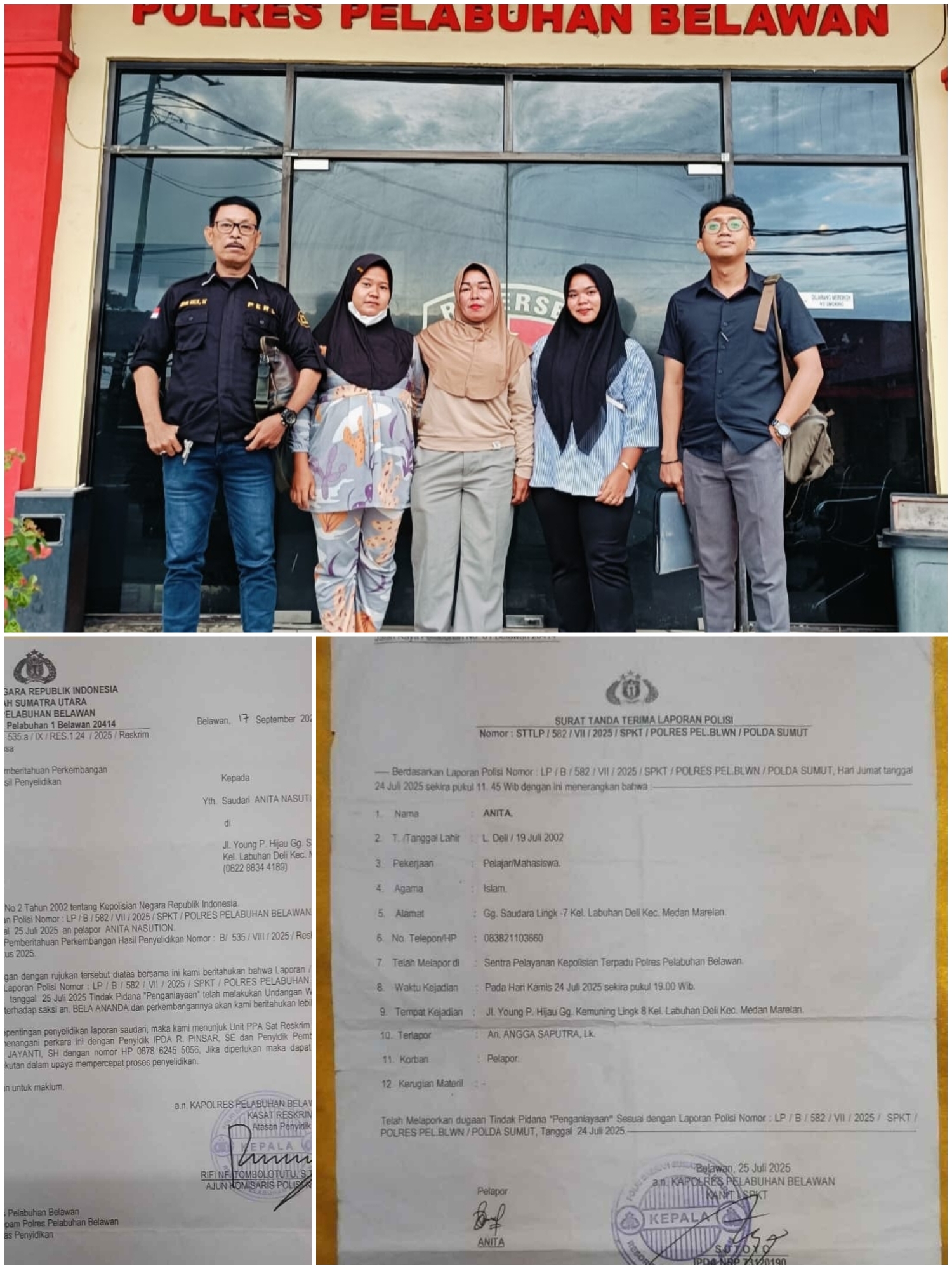 Perkara dugaan tindak pidana penganiayaan tersebut tertuang dalam laporan polisi nomor : LP / B / 585 / VII / 2025 / SPKT / POLRES PELABUHAN BELAWAN / POLDA SUMUT tanggal 25 Juli 2025 atas nama Anita.