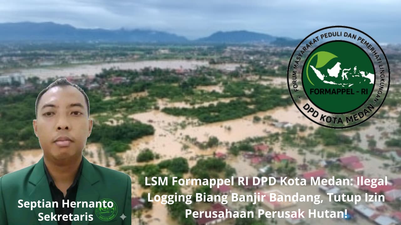 RAJAWALINEWS – Medan — Sekretaris LSM Forum Peduli dan Pemerhati Lingkungan Republik Indonesia (Formappel RI) DPD Kota Medan, Septian Hernanto, angkat bicara keras terkait bencana banjir bandang dan longsor yang melanda beberapa wilayah di Sumatera Utara.