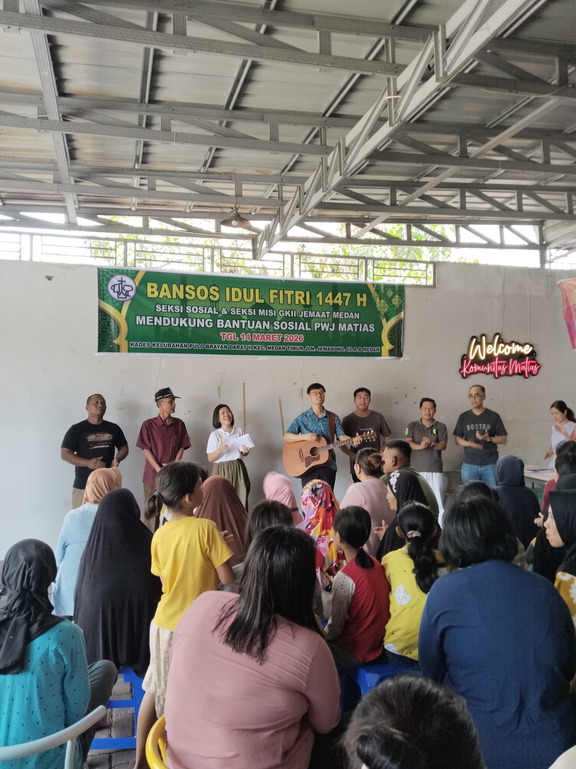 RAJAWALINEWS – Medan – Dalam semangat kebersamaan dan kepedulian sosial menjelang Hari Raya Idul Fitri 1447 H, Jemaat Gereja Kristen Injili Indonesia (GKII) melaksanakan kegiatan pembagian bantuan sosial (bansos) kepada masyarakat di Lingkungan IX, Kelurahan Pulo Brayan Darat II, Kecamatan Medan Timur. Kegiatan tersebut berlangsung di Jalan Jumadi No. 62 A-B, Medan, pada Sabtu (14/03/2026).